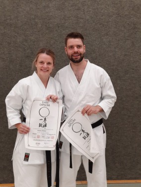 Antonia und Max Richter legen erfolgreich die Prüfung zum nächsten Dan ab.