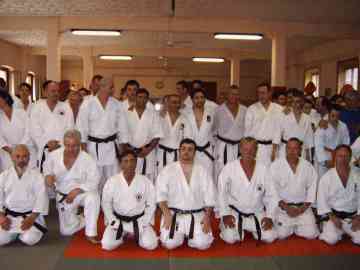 Luigi Stanziano (Dojoleiter Milano) und Ludger Möller demonstrierten landestypische Katas (Kampf gegen einen imaginären Gegner), bevor als besonderes Highlight der italienische Bundestrainer im Kumite, Mimmo Caprioli, einige Tricks und Techniken lehrte.