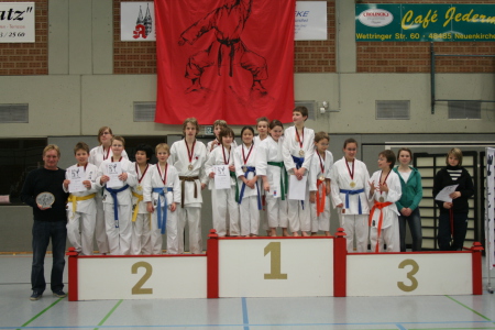 Im Kata-Team traten zwei Mannschaften an, die sich auf den Plätzen zwei und drei behaupteten. Aufgrund der Beschränkung des Kyu (9. bis 6. Kyu) starteten nur zwei Schüler ohne Erfolg in der Disziplin Kumite-Technik am Ball.