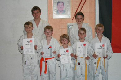 Kinderprüfung zum 7. Kyu: Maurice Peter, Mirko Perrevoort und Jannis Sickmann.