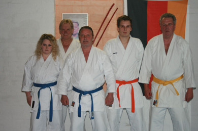 Abends traten die vier erwachsenen Karateschüler an. Möller bewertete die Vorführungen sämtlich positiv, so dass alle Teilnehmer den nächsten Kyu erhielten.