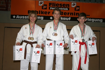Auch Jan Hornung (U 16, bis 63 kg) kämpfte überzeugend, erhielt dann aber nach mehreren Verwarnungen seines Gegners einen Schlag ins Gesicht; der Kampf wurde abgebrochen. Hornung hatte somit zwar gewonnen und stand auf dem Siegertreppchen, konnte aber nicht mehr im Kumite-Team starten.
