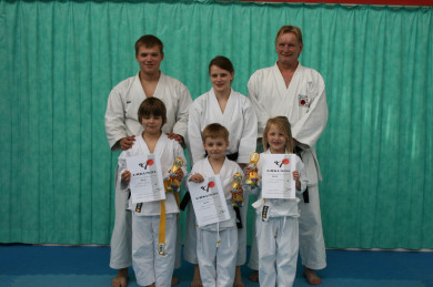 RHEINE. Bei einer Gürtelprüfung für Karateschüler der Sportschule Yuishinkan starteten die Kinder. Juli Steinhausen und Janik Konermann wirkten sehr angespannt, zeigten aber gute Darbietungen und nahmen die Urkunden zum 9. Kyu (Weißgurt) in Empfang. Auch Hennes Weßling genügte den Anforderungen zum 8. Kyu (Gelbgurt). Glücklich nahm auch er seine Urkunde entgegen.