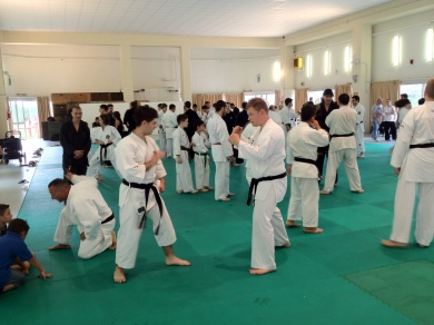 Aus Italien: Stanziano Luigi, 6. Dan, Goyu-Ryu-TD (Technischer Direktor) VISP Italia Karate-Do Tradizionale; Caprioli Dominico, 7. Dan, Shotokan-Ryu-TD VISP Italia Tradizionale Karate, Kumite Landestrainer