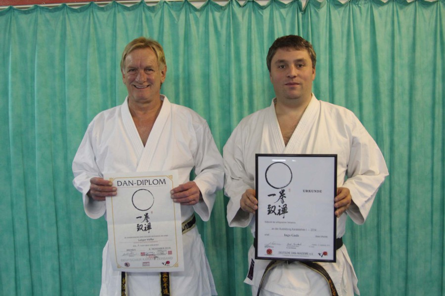 Sensei Ludger Möller von der Sportschule Yuishinkan legte die Prüfung zum 6. Dan ab – was gerade aufgrund der WM in Deutschland ein besonderes Erlebnis war. Mit dem 6. Dan gehört er zu den höchstgraduierten Danträgern im Goju-Ryu-Karate in Deutschland. Die Prüfer waren Ulrich Heckhuis (7. Dan), Klaus Fingerle (7. Dan) und normalerweise Fritz Nöpel (9. Dan). Fritz Nöpel fiel krankheitsbedingt aus, Roland Hanschke (8. Dan und Ehrenpräsident Deutscher Karateverband) vertrat ihn. Die Prüfer waren mit den Leistungen von Ludger Möller sehr zufrieden, sodass sich seine 42-jährige Karateerfahrung und die lange Vorbereitungszeit von circa einem Jahr auszahlten.