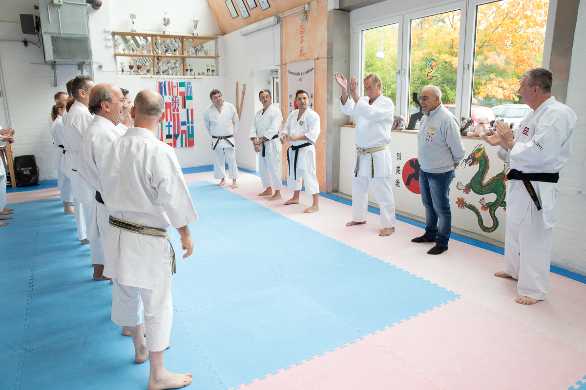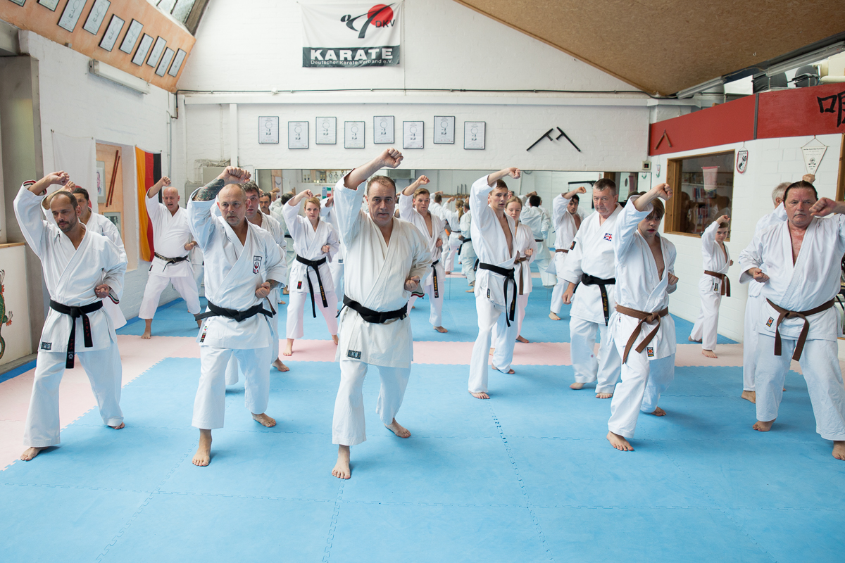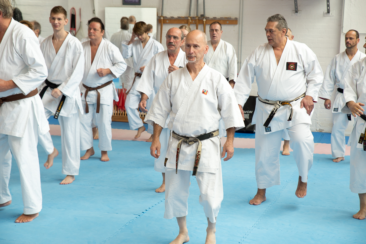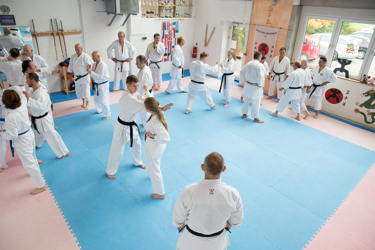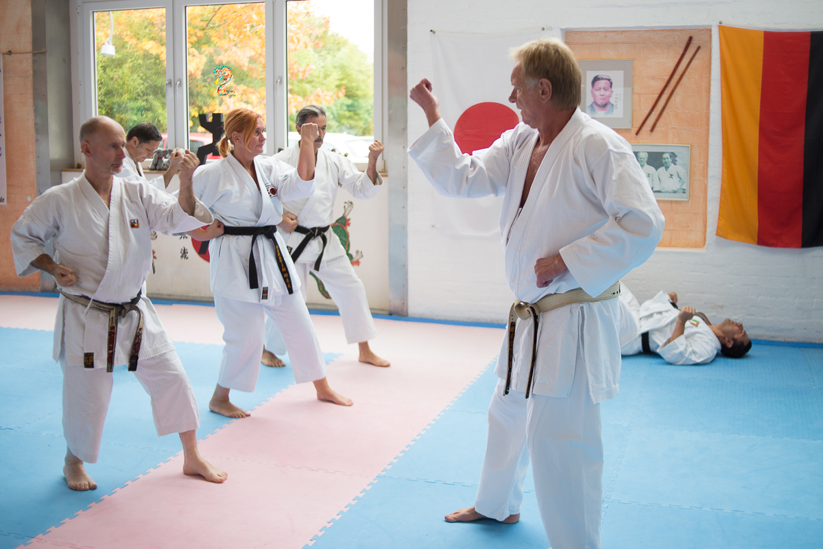 Der Samstag startete mit einem großen Karatetraining im Dojo der Sportschule Yuishinkan, Bonifatiusstraße 363. Den Auftakt machte Ludger Möller mit Kara-T-Robic, Kihon (Grundtechniken) und Kumite-Ura