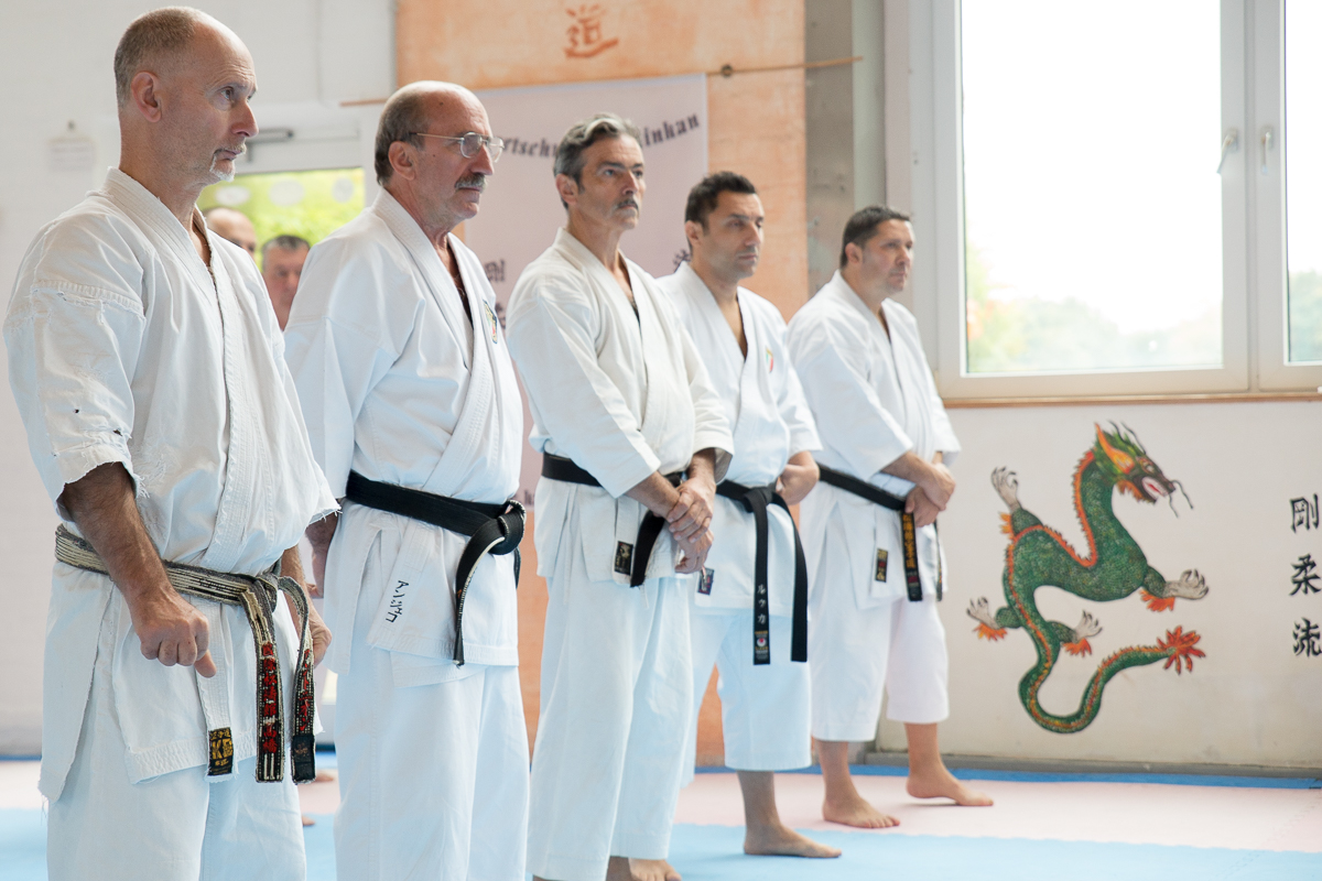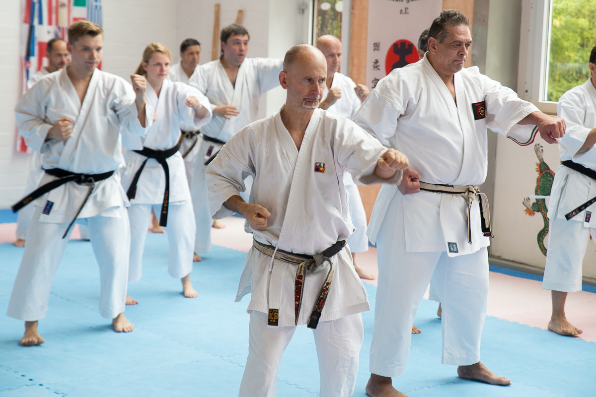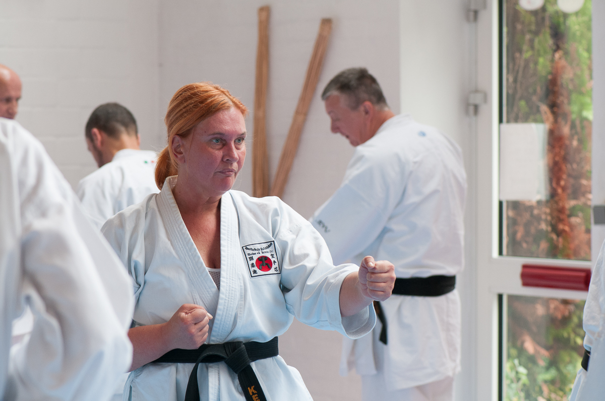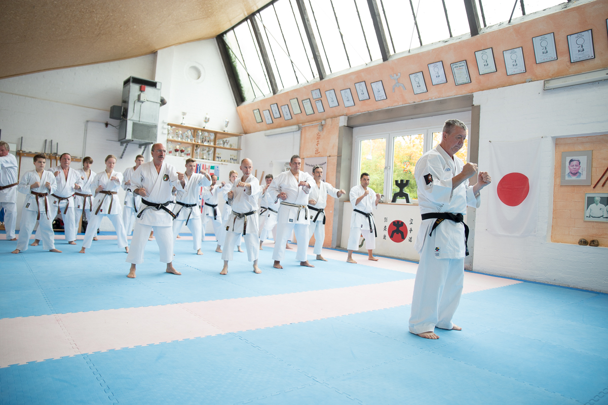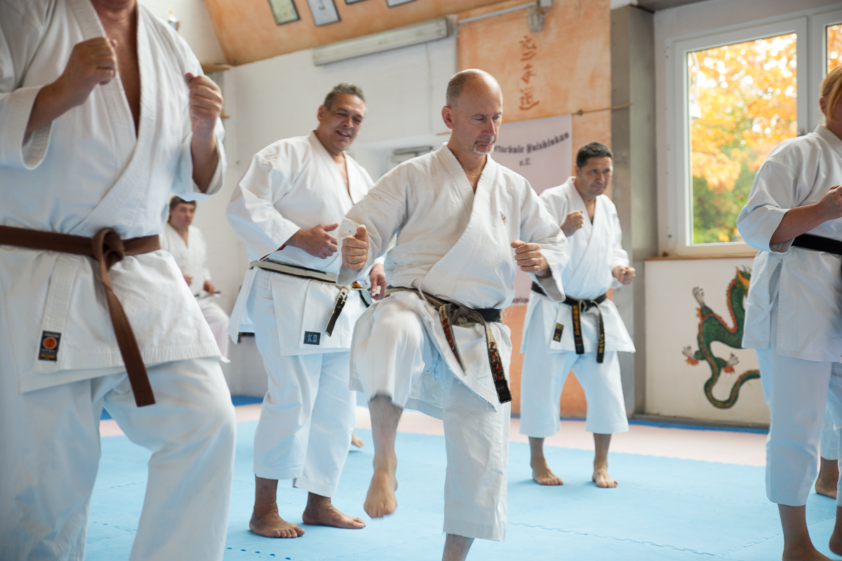 Der Samstag startete mit einem großen Karatetraining im Dojo der Sportschule Yuishinkan, Bonifatiusstraße 363. Den Auftakt machte Ludger Möller mit Kara-T-Robic, Kihon (Grundtechniken) und Kumite-Ura