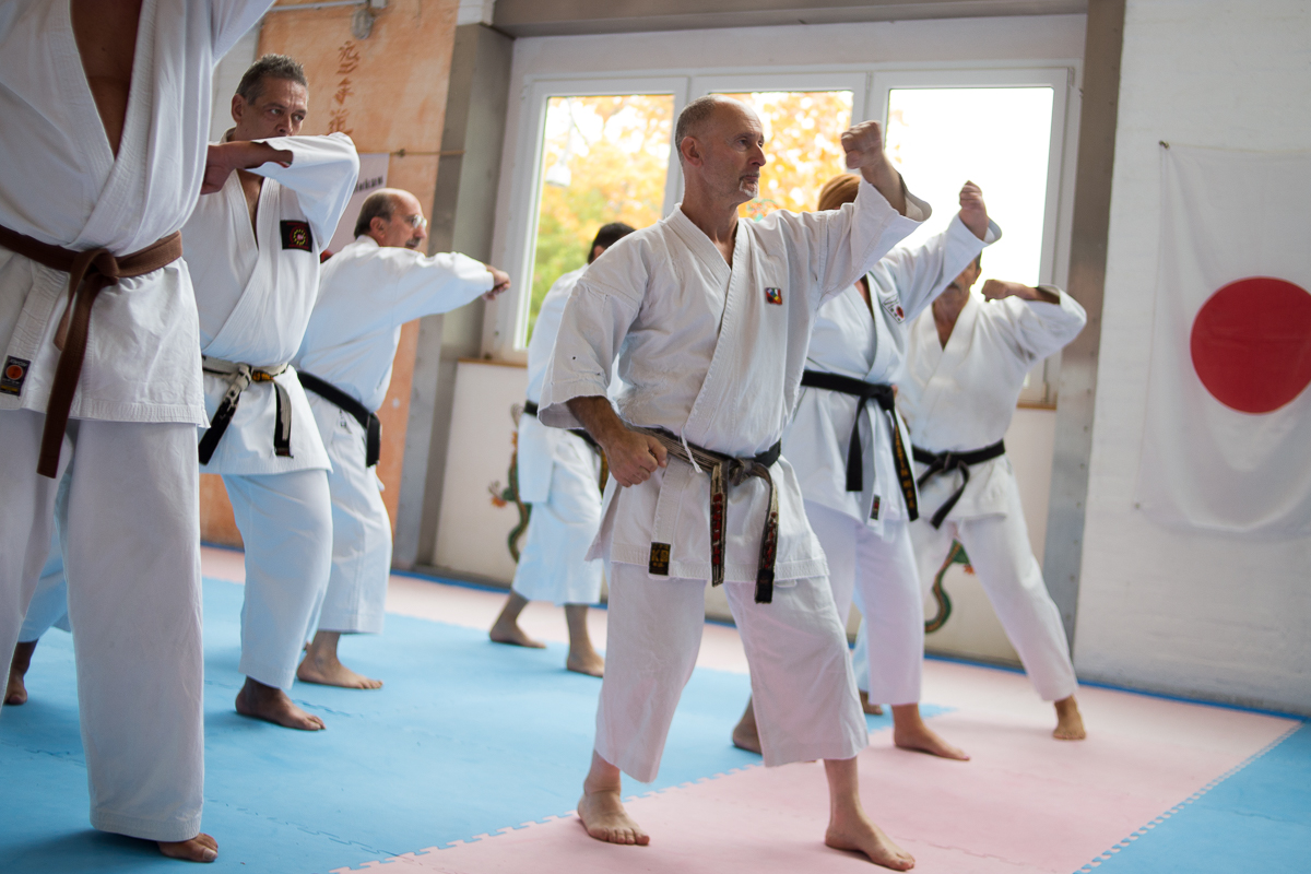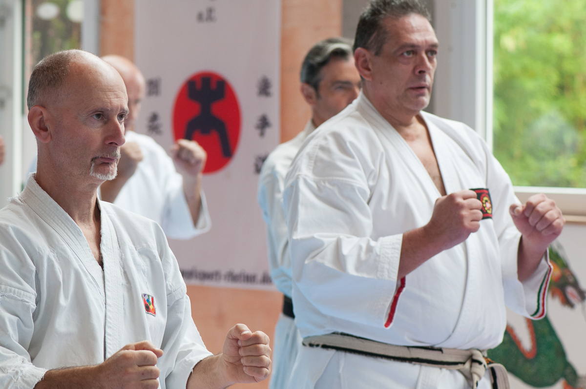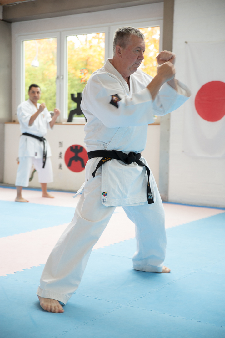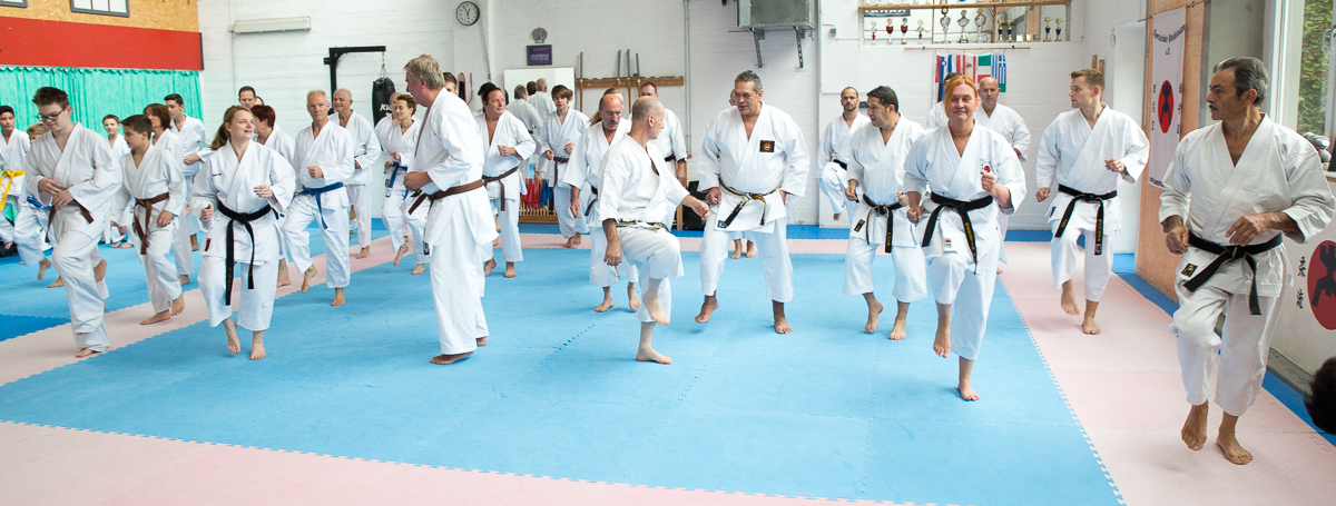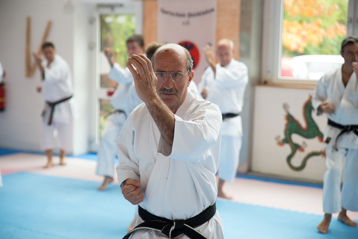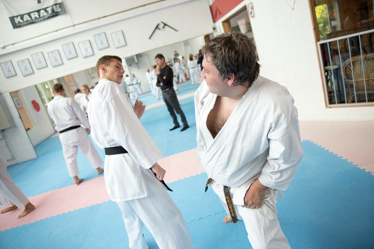 Der Samstag startete mit einem großen Karatetraining im Dojo der Sportschule Yuishinkan, Bonifatiusstraße 363. Den Auftakt machte Ludger Möller mit Kara-T-Robic, Kihon (Grundtechniken) und Kumite-Ura