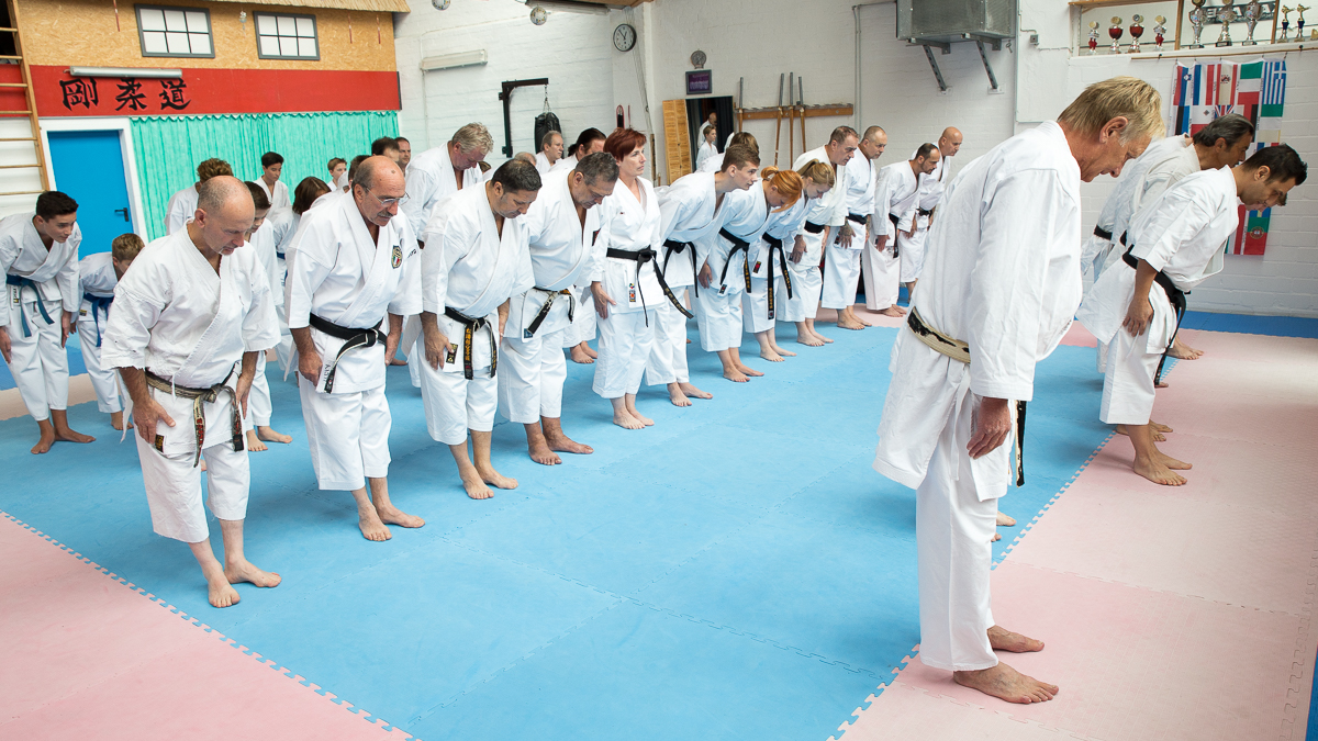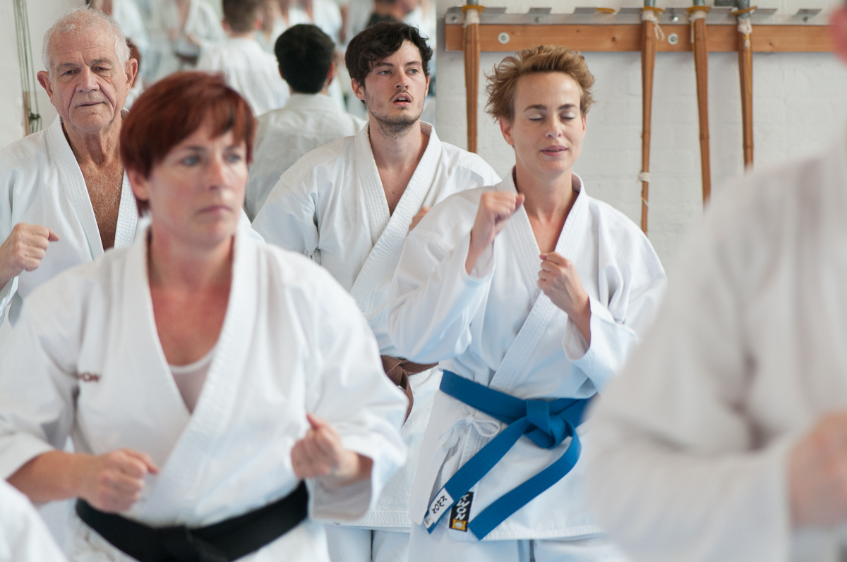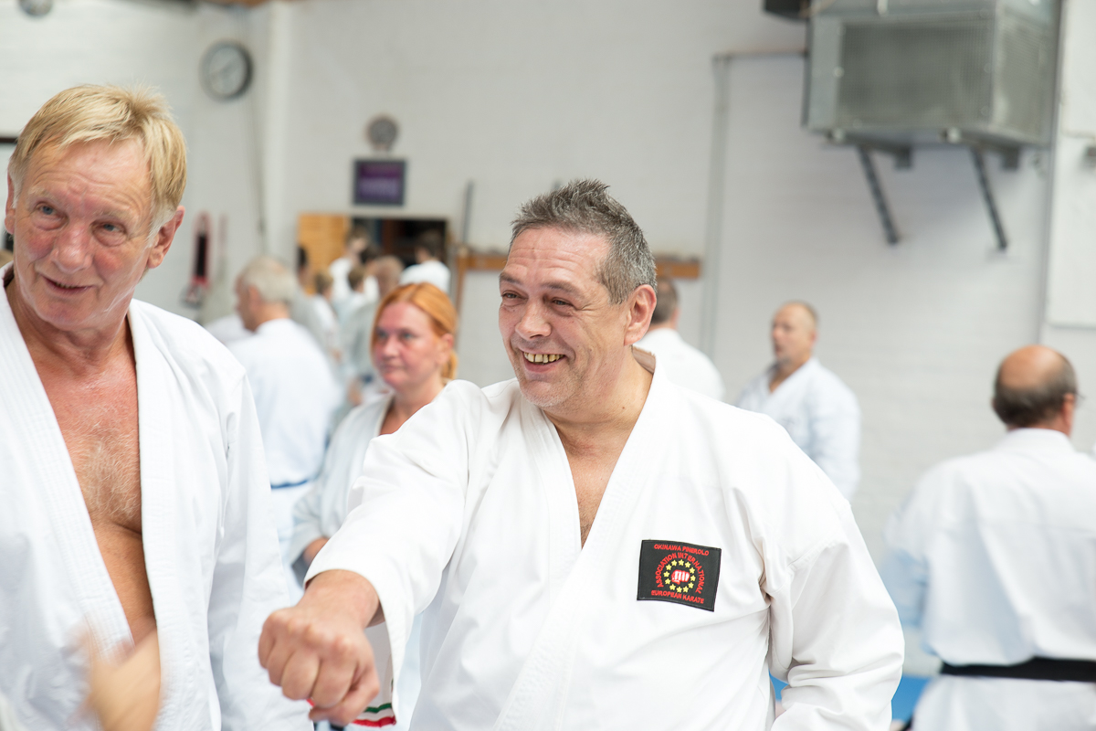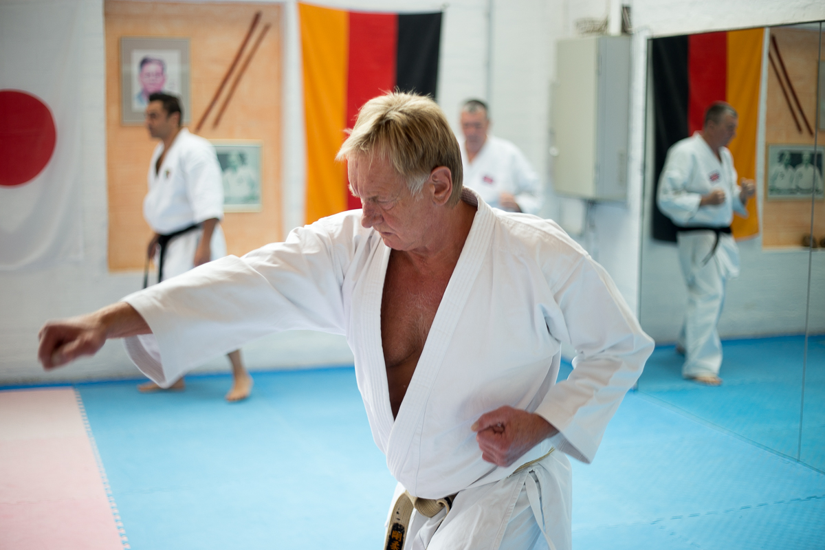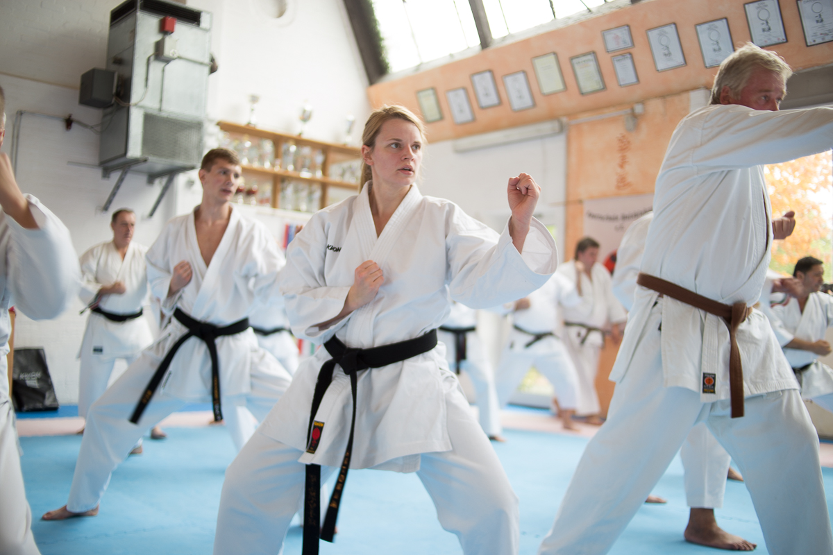 Der Samstag startete mit einem großen Karatetraining im Dojo der Sportschule Yuishinkan, Bonifatiusstraße 363. Den Auftakt machte Ludger Möller mit Kara-T-Robic, Kihon (Grundtechniken) und Kumite-Ura
