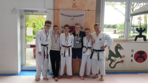 Mirco Peter, Mirko Perrevoort und Hennes Weßling traten im Kumite-Team an. Sie unterlagen aber dem Landesmeister und gewannen Bronze.